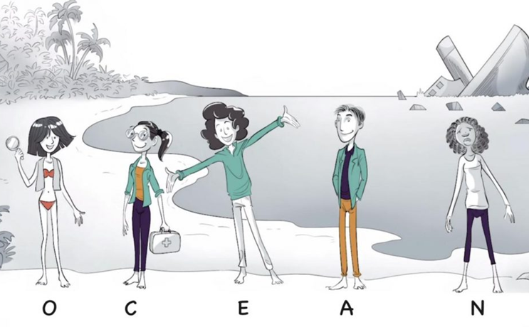 Sur le premier bateau, des psychologues observent la scène : chacun des cinq amis incarne un trait du modèle OCEAN.
